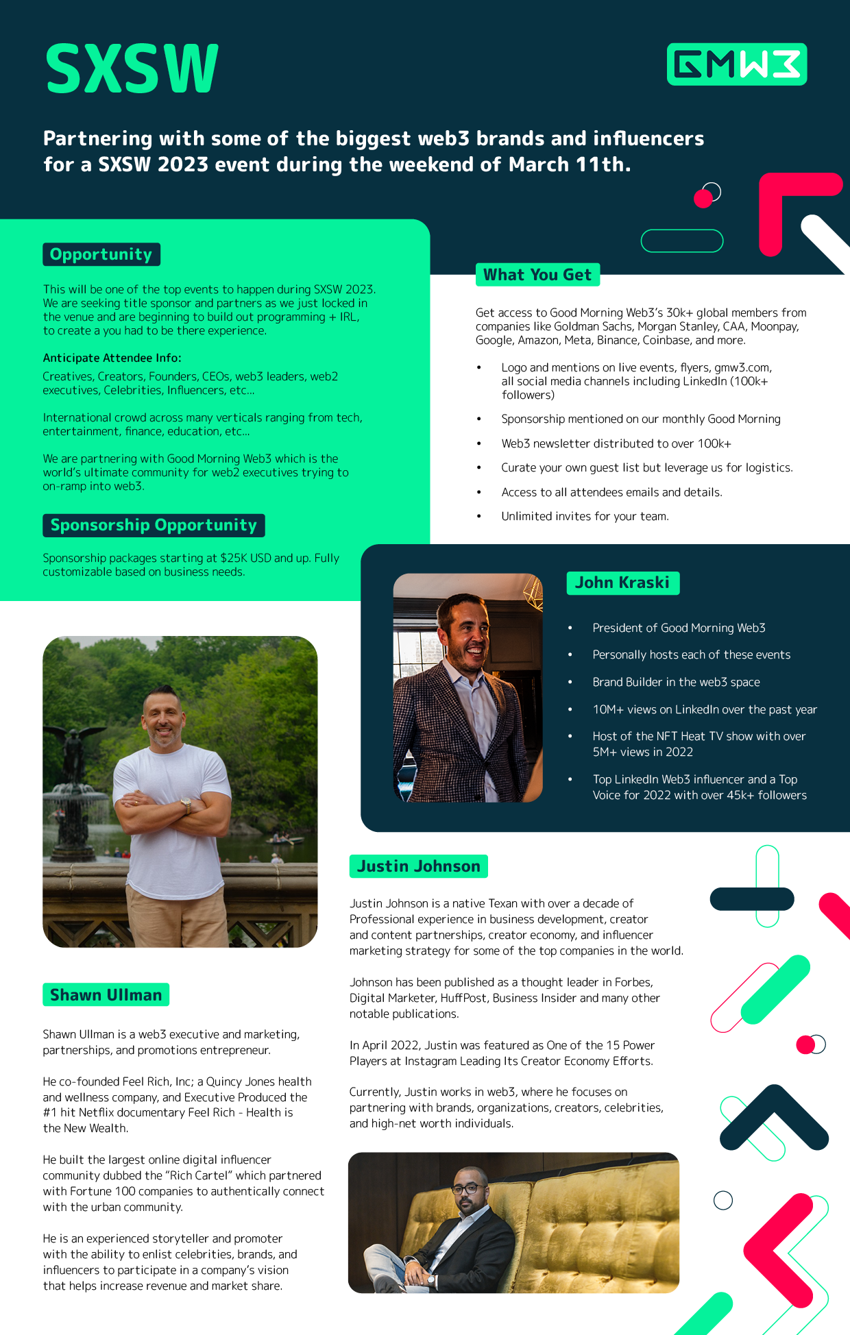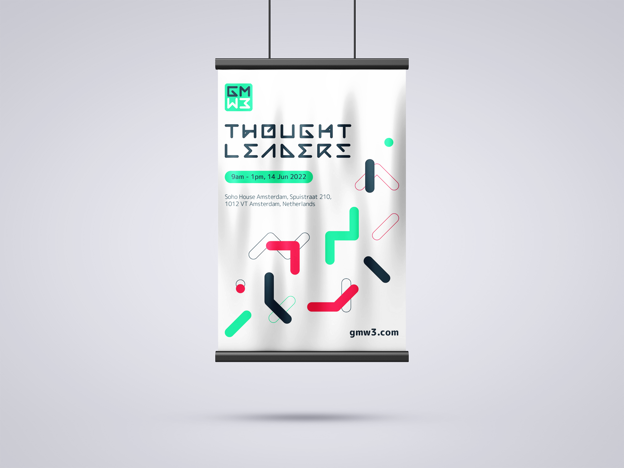 Demonstrating ability to expand upon brand guidelines created by art director at LandVault, Phil Morrell. I Developed a range of event material, social media content, email newsletter banners and branded documents. I used the shapes within the logo to create patterns and widen the variety of forms opening up more design opportunities for the branding. We wanted the overall look to reflect Web3’s technology forward approach by using longer strokes alluding to electrical currents combined with scattered shapes to give a sense of movement and excitement.